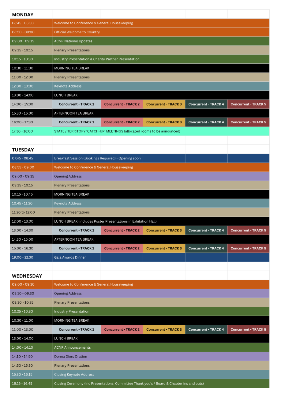 Every effort will be made to ensure program accuracy but there may be circumstances that will necessitate adjustments to session times and / or speakers.